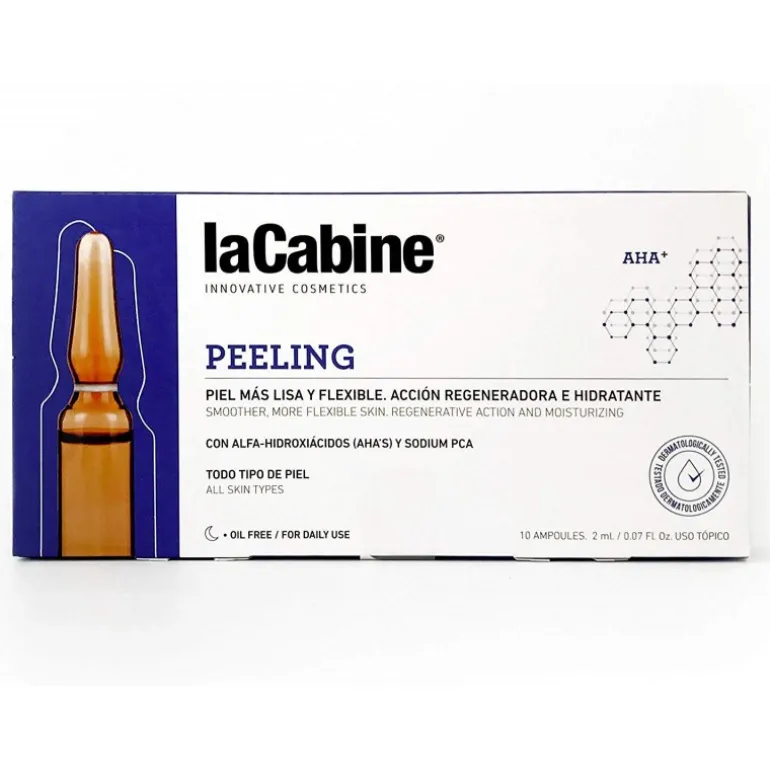 Efecto Peeling: Regenera la capa superficial de la piel, eliminando las escamas y células muertas con un tratamiento no invasivo de recambio celular. Peeling Combinado: Acido cítrico, Láctico y Tartárico. Todas las ventajas de los compuestos en un solo producto. Antiarrugas: Minimiza las arrugas y poros dilatados. Antimanchas: Elimina la decoloración de la piel Antiacné: Adecuado para atenuar las secuelas, marcas e imperfecciones de la piel producidas por el acné. Prepara la epidermis para maximizar posteriores tratamientos de belleza.10 x Ampollas Peeling 2ml