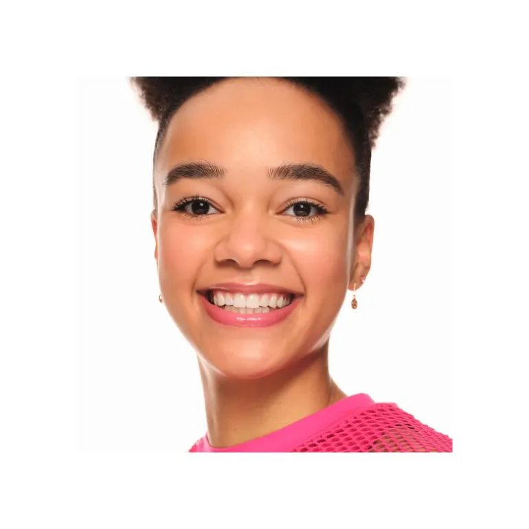 Su textura lechosa transparente contiene partículas rosas brillantes que recubren tus labios con un acabado superbrillante que capta la luz con cada sonrisa.