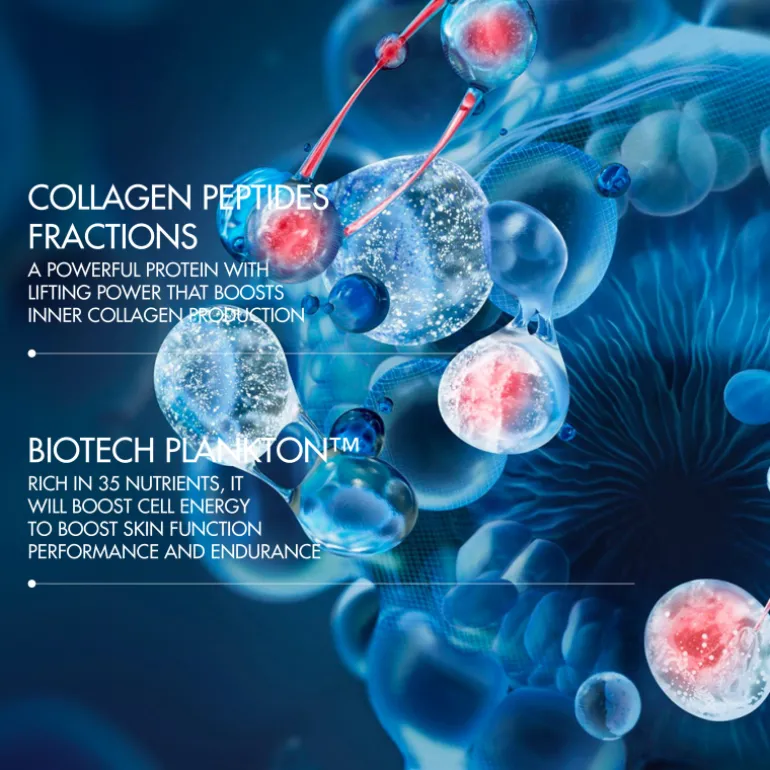 Su innovadora fórmula combina Life Plankton邃ón de péptidos de colágeno para ayudar a tu piel a mantenerse firme y visiblemente elevada.