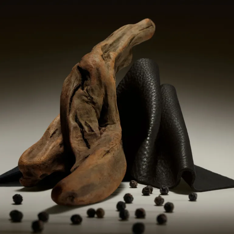 En la salida, la pimienta negra aviva el aroma, mientras que la nueva e intensa nota de cuero del fondo amplifica la fuerza del perfume.