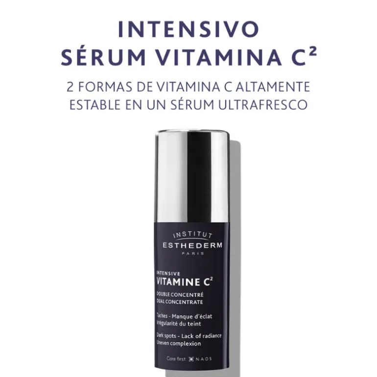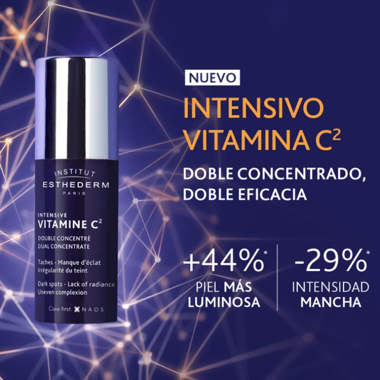 El sérum Intensive Vitamine C² es el primer sérum con dos tipos de vitamina C con una eficacia inmediata y prolongada. Inmediata, porque los resultados se obtienen de forma rápida. Prolongada, porque su acción perdura en la piel. Esta doble acción se consigue a través de los dos tipos de vitamina C: vitamina C pura (10%) y provitamina C (2%).