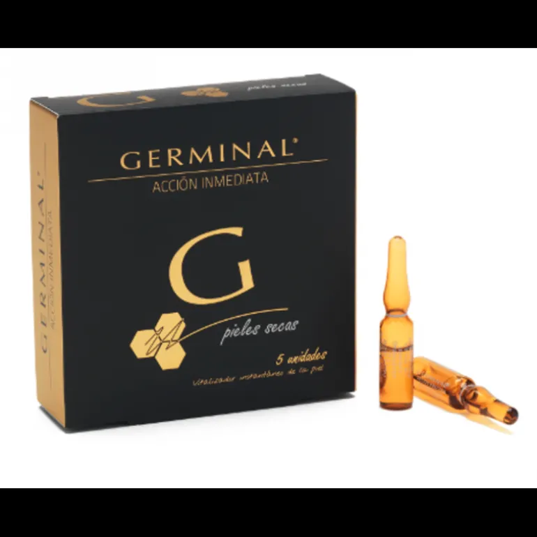 GERMINAL ACCIÓN INMEDIATA PIELES SECAS 5 AMPOLLAS, hidratación, nutrición especial para pieles secas. Efecto lifting y vitalizador.