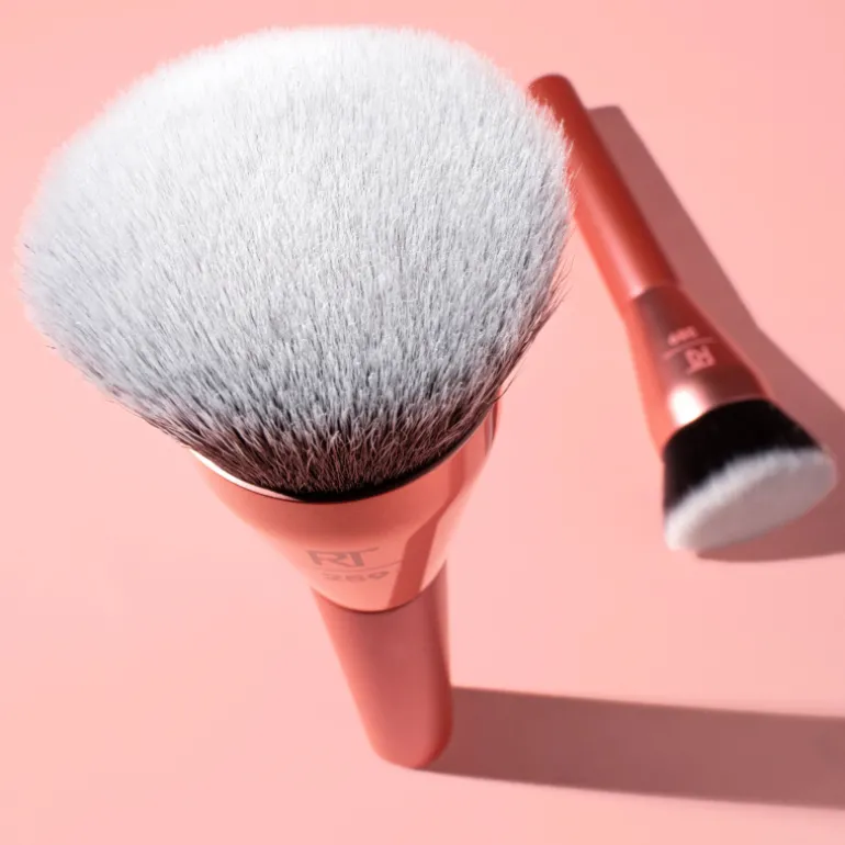 Real Techniques Glow Round Base. Brocha de maquillaje con el nuevo cabezal plano difumina la base de maquillaje para conseguir una base uniforme y suave con un acabado «air-touched»
