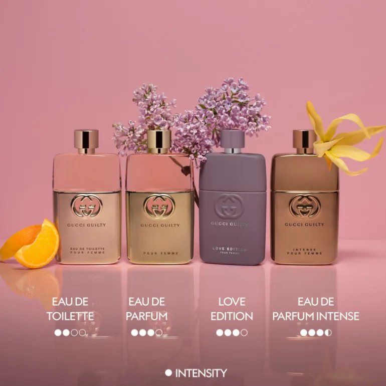 Creados para inspirar una conexión más profunda con las personas, los lugares y las cosas que encienden cada amor, los icónicos ingredientes signature de Gucci Guilty Pour Femme se mezclan apasionadamente en Gucci Guilty Love Edition Pour Femme.