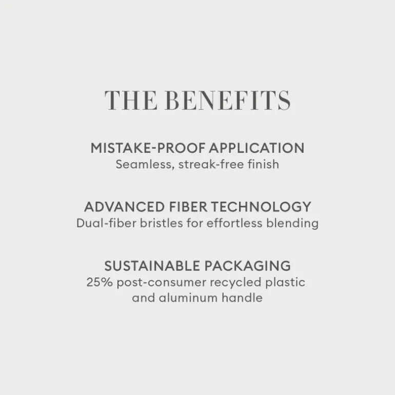 Sus cerdas suaves y alargadas depositan la cantidad justa de producto sobre el rostro, creando un acabado radiante y natural sin rayas.