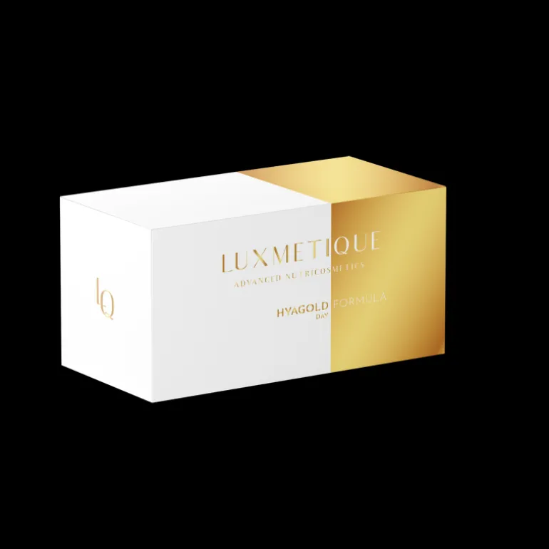 Luxmetique Hyagold Day Formula. Nutricosmético bebible con la máxima concentración de ácido hialurónico diurno, para hidratar todas las capas de la piel.