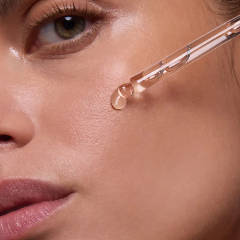 Aplicar unas gotas del sérum uniformemente en el rostro, el contorno de los ojos y el cuello antes de dar unas suaves palmaditas. Dejar que se absorba por completo antes de seguir con la CREMA FACIAL de la Dra. Barbara Sturm.