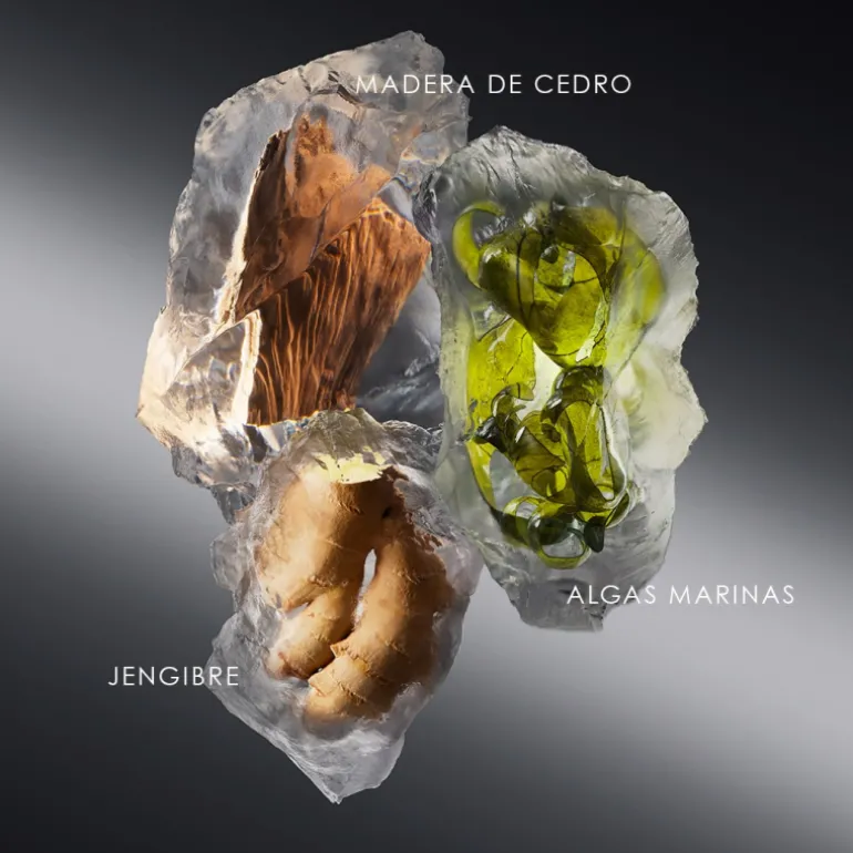 La interacción entre las polaridades salada y amaderada infunde a la fragancia una energía dinámica, para una intensidad poderosa y fresca.