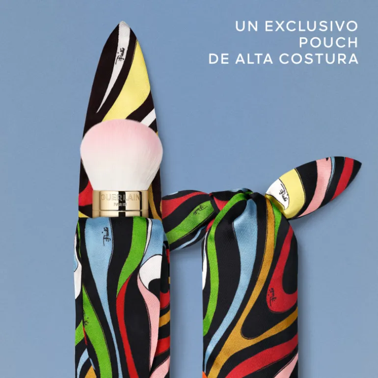 Guerlain Météorites Marmo Swirl Brocha para Polvos Edición limitada. Camille Miceli, directora artística de Pucci, y Violette, Directora Creativa de Maquillaje de Guerlain, fusionan sus talentos para vestir la emblemática brocha Météorites con el motivo Marmo de Pucci.