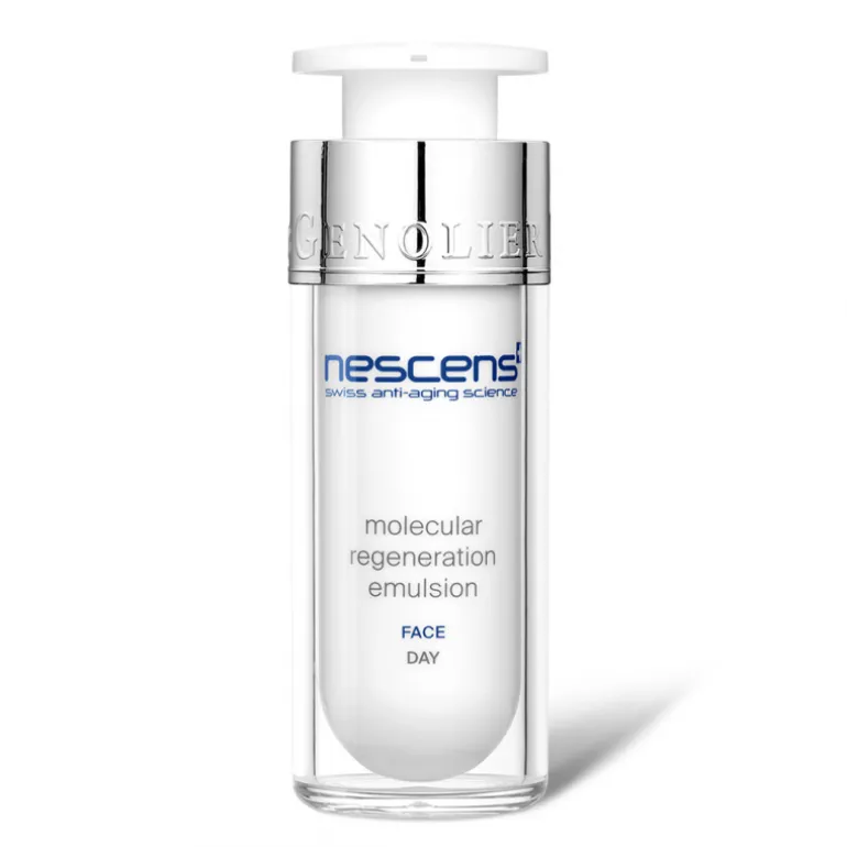 La emulsión de regeneración molecular de Nescens, un concentrado de principios activos seleccionados por sus efectos sinérgicos, tiene como objetivo ayudar a neutralizar los mecanismos de daño molecular relacionados con el envejecimiento natural y fotoinducido, y favorecer la renovación de macromoléculas en la matriz extracelular.