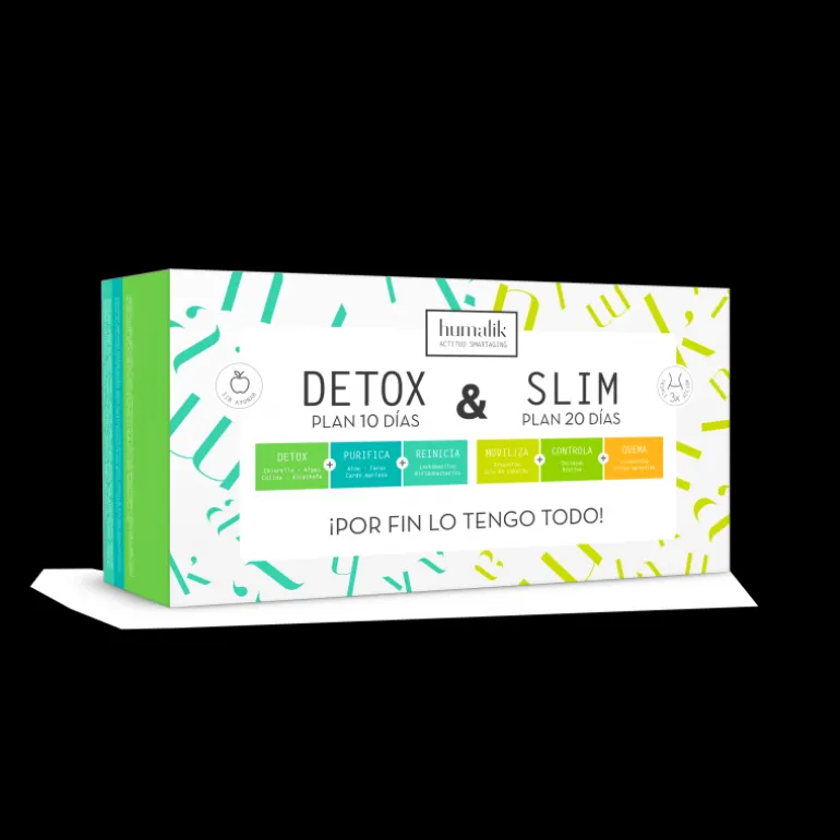 Por fin un producto que lo tiene todo en uno. Un pack de 30 días que incluye un Plan Detox para los primeros 10 días y un Plan Slim para los siguientes 20. Con esta combinación, tienes todo lo que necesitas para detoxificar, depurar y conseguir tus objetivos de peso. El Pack contiene 10+20 sobres, (5+5)+(80+40) comprimidos.