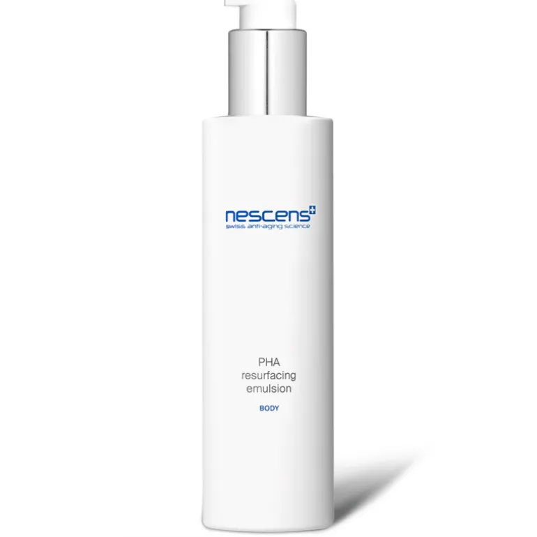Nescens PHA Resurfacing Emulsion ayuda a reducir la apariencia de descamación excesiva en condiciones de piel seca asociadas con el proceso de envejecimiento.