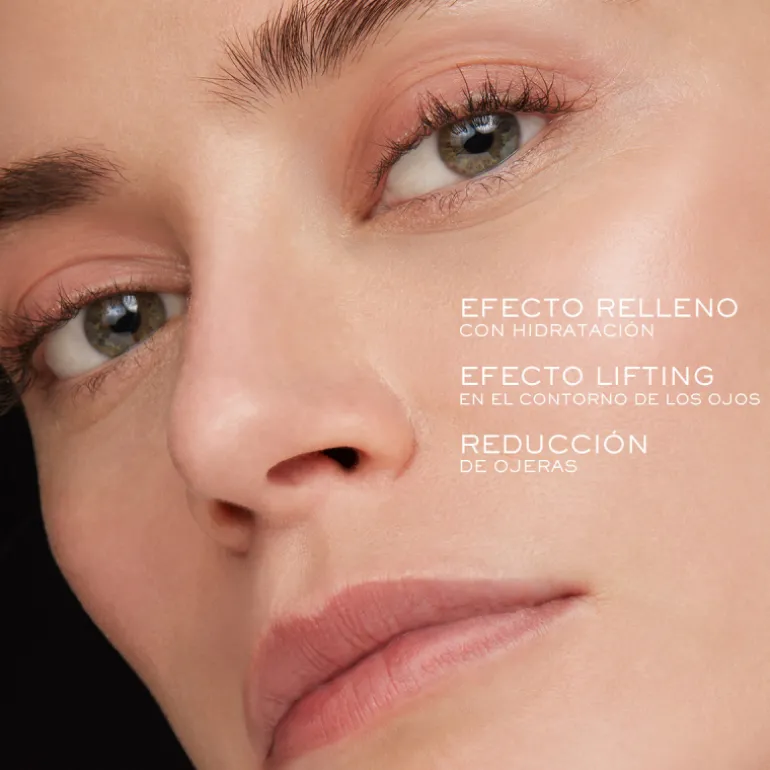 Actúa rellenando las arrugas e hidratando intensamente la piel. Seleccionado por su menor volumen molecular para una eficacia duradera en la piel del contorno de ojos.