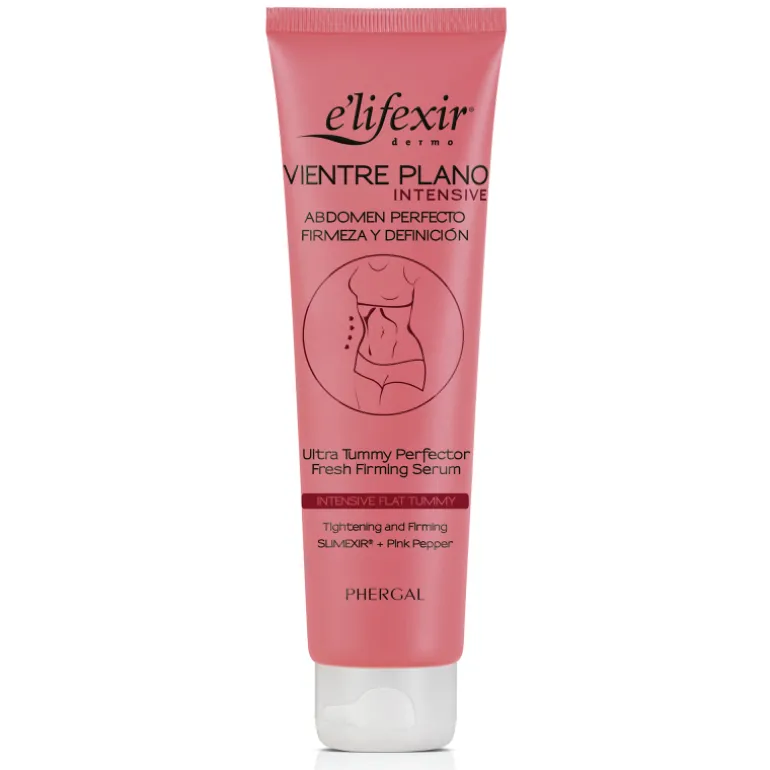 Elifexir Dermo Sérum Vientre Plano Intensive es un sérum remodelador que mejora y define la zona abdominal, favorece la quema de grasas y estimula la producción de colágeno. Para un abdomen más fime, definido y tonificado. La combinación de ingredientes de la crema Vientre Plano Intensive como SLIMEXIR®, Pink Pepper y Cafeína potencian los ejercicios hipopresivos y LPF (Low Pressure Fitness). Potente sérum reductor con triple acción quema grasas que elimina volumen y tonifica, tensando y dando firmeza al abdomen.
