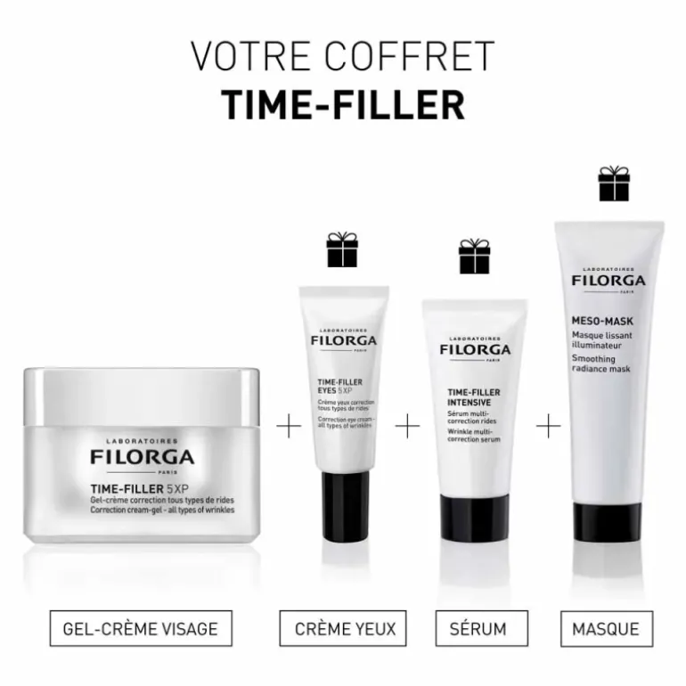 FILORGA TIME-FILLER 5XP CREMA 50ml. reinventa su crema antiarrugas más vendida que actúa simultáneamente sobre 5 tipos de arrugas, gracias al corazón de la fórmula 5XP inspirada en 5 técnicas de medicina estética.