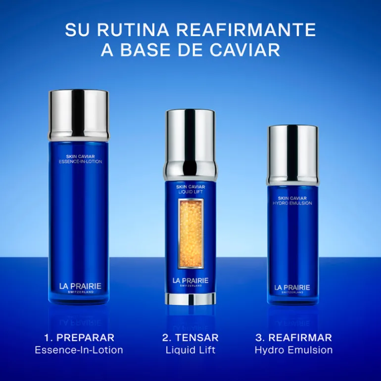 Todos los productos de la colección Skin Caviar están enriquecidos con nutrientes de efecto antioxidante que protegen la piel y con la excepcional tecnología basada en el Complejo Celular Exclusivo de La Prairie, elaborada con una fórmula rejuvenecedora que revitaliza cada célula mejorando el proceso natural de renovación de la piel.