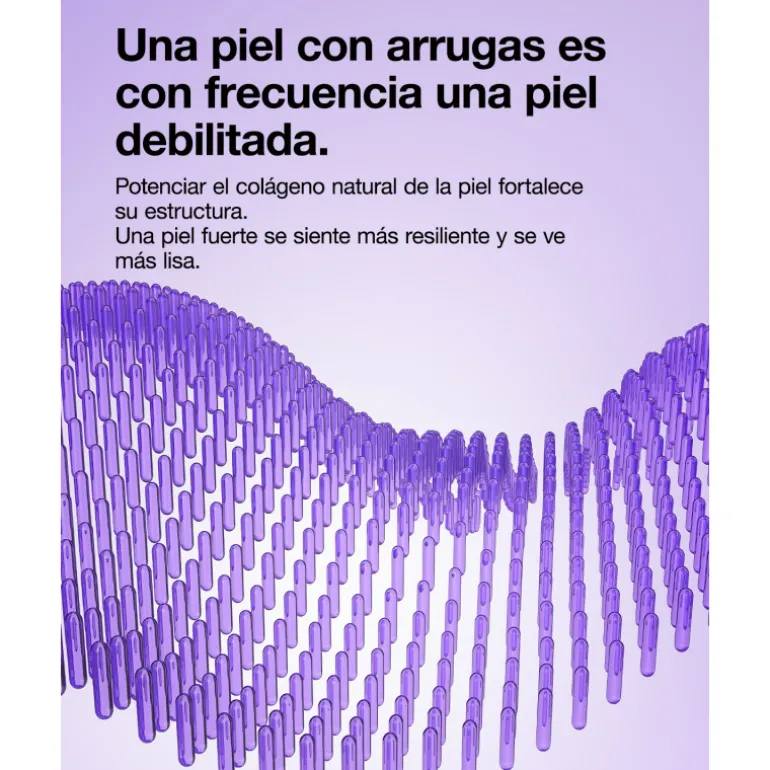 Su innovadora fórmula con CL1870 Peptide Complex邃ágeno natural de la piel para ayudar a reforzar la estructura dérmica, y que sientas la piel más fuerte y lisa.