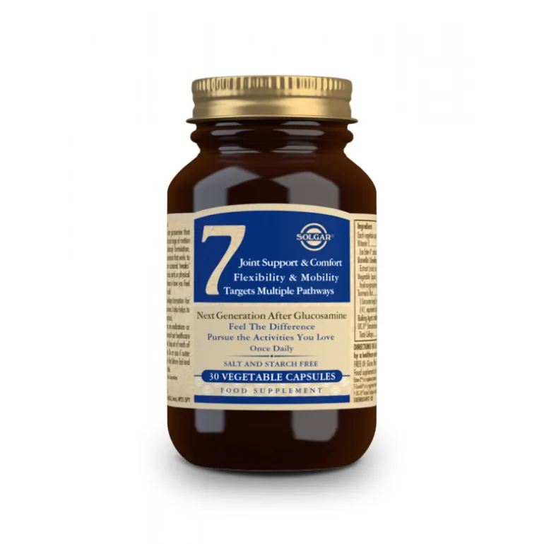Solgar 7 es un producto para el Mantenimiento y confort de las articulaciones. Contribuye a mantener la movilidad y la flexibilidad. En esta innovadora formulación, Solgar® 7 reúne 7 ingredientes . Solgar 7 puede ayudarle a ponerse en marcha. Solgar 7 puede ayudar a mantener la resistencia de huesos, músculos y articulaciones y contribuye a la movilidad.