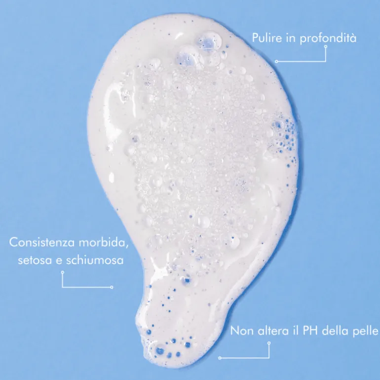 Una textura suave, sedosa y espumosa que limpia la piel en profundidad retirando todos los restos de maquillaje, sin alterar el pH de la piel ni resecar.