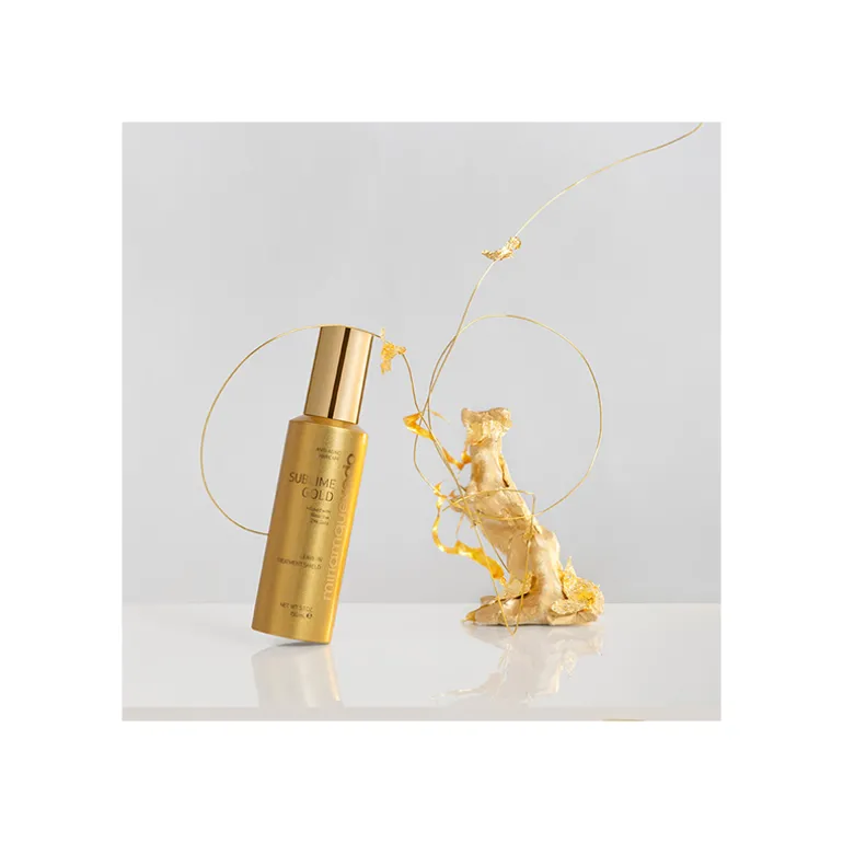 Fórmula exquisita e innovadora potenciada con una concentración sin precedentes de Oro de 24k de 3 tipos: bioactivo, micronizado y en escamas, que actúan como agente protector del envejecimiento, dotan al cabello de una luminosidad sublime y optimizan la bio-distribución de nuestros sublimes ingredientes activos permitiendo su óptima absorción. Enriquecido con microlípidos de Células Madre de Olivo Silvestre, Queratina Vegana, Bambú Marino, Péptido de Moringa y los complejos Multi-bond Filler y Vegan Shine Beautifier, fortalece y regenera el cabello desde el interior y protege eficazmente la fibra capilar y cuero cabelludo del estrés oxidativo, y a su vez, repara y suaviza el cabello, devolviéndole la sedosidad en una melena más elástica y suave. Actua como un escudo protector contra las agresiones externas responsables del envejecimiento prematuro como el calor, tratamientos químicos, polución, rayos UV o luz azul.