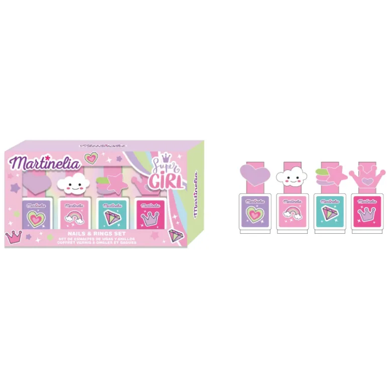 Además, cada esmalte de uñas viene con un anillo a juego con temática de Supergirl para completar tu aspecto poderoso y con estilo.