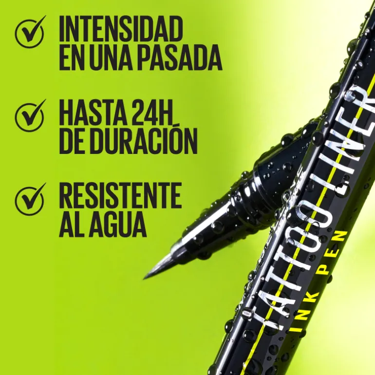 Su fórmula effecto tattoo con pigmentos ultra-intensos: resiste agua, roces y no se cuartea.
