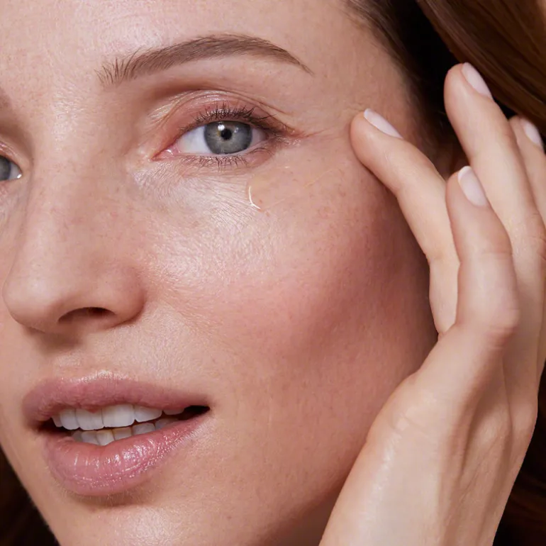 Por la mañana o por la noche, aplica media dosis en el contorno de ojos con suaves toques con las yemas de los dedos.