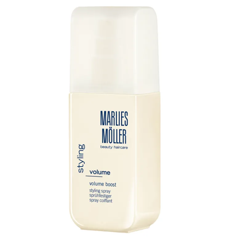 Volume Boos Styling Spray de Marlies Möller es una laca en spray que tiene efecto voluminizador. Es un spray ideal para estilismos. Protege del calor y dota de mayor resistencia al cabello. No se aclara y se fija con calor.