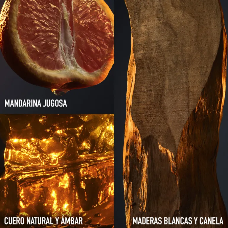 La rosa y la canela fusionados con el cuero especiado desatan toda su masculinidad.