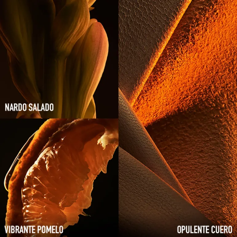 Una dualidad entre el pulso salado y la opulencia del cuero solar. Una fragancia con el calor del ámbar que provoca una una sensualidad exacerbada, como la piel caliente bajo el sol.