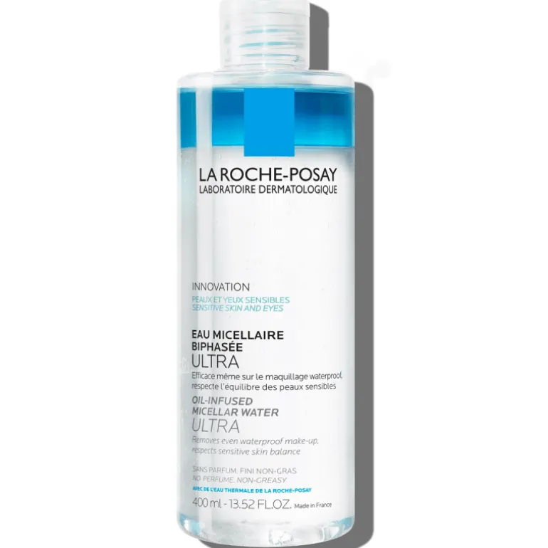 La Roche Posay. El agua micelar elimina incluso el maquillaje resistente al agua, respeta el equilibrio de las pieles sensibles.