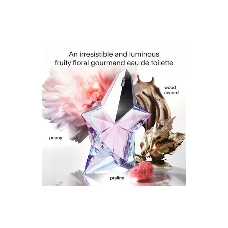 Creado en 1992 por Olivier Cresp y Yves de Chirin, Angel es un Eau de Toilette floral, afrutado y goloso que nace de la combinación entre notas afrutadas y florales de la mandarina y la peonía con el dulzor del praliné y la manzana, alcanzando una gran profundidad gracias al acorde de madera rubia y pachulí.