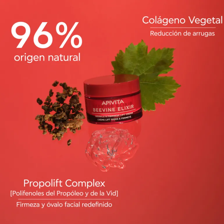 Apivita Beevine Elixir Crema Lift y Firmeza. Crema de textura aterciopelada que proporciona a la piel una sensación de confort y suavidad.