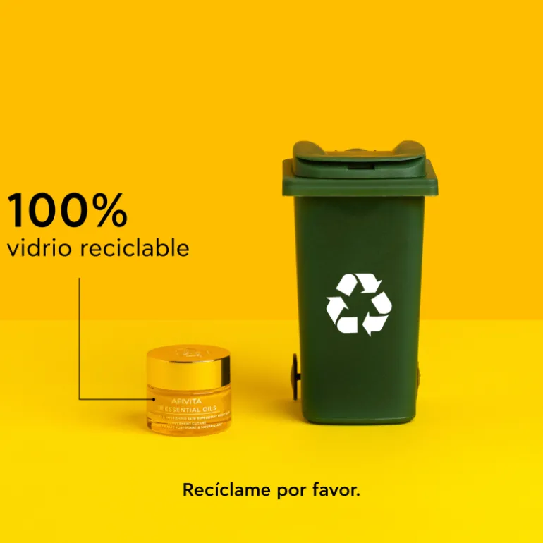 Apivita Bessential Oils Bálsamo de Noche. Un bálsamo de cera de abeja que se transforma en un aceite al masajearlo sobre la piel.