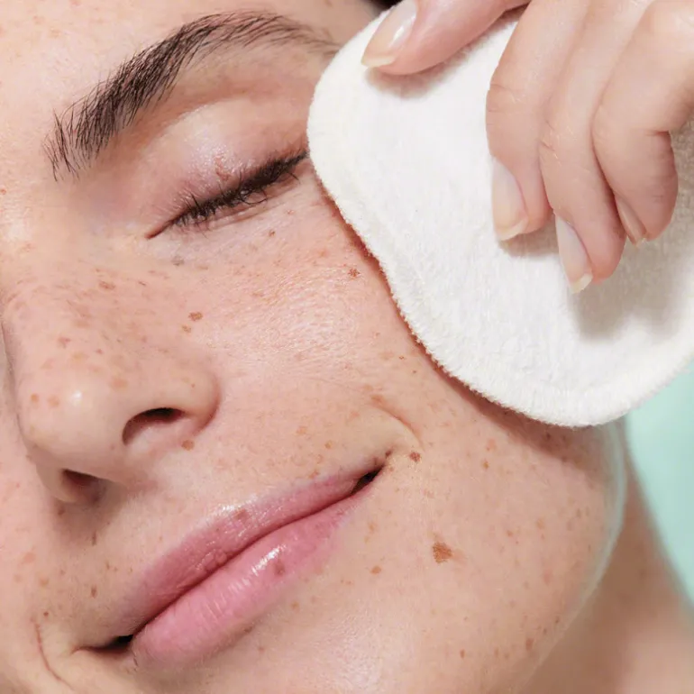 Agitar bien el frasco y repartir el producto en un disco de algodón.