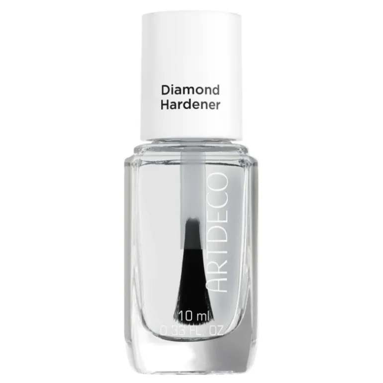 El Diamond Hardener, con su excepcional combinación de principios activos provenientes del aldehído hexanal y del polvo de diamantes, refuerza las uñas al tiempo que les aporta un brillo reluciente.