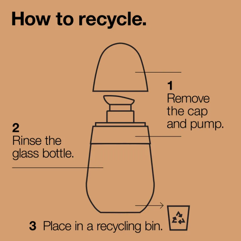 Retira la tapa y el dosificador, lava el interior del vidrio y llévalo a un contenedor de reciclaje.