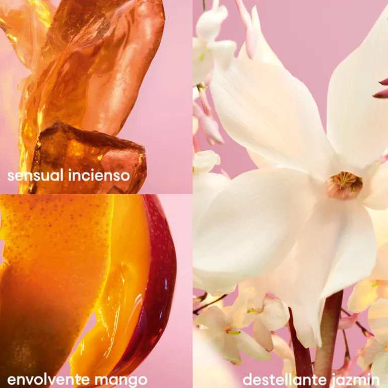 El jazmín, excepcionalmente fresco y puro, el suculento mango y la cremosidad del incienso, dejan la piel delicadamente perfumada durante todo el día.