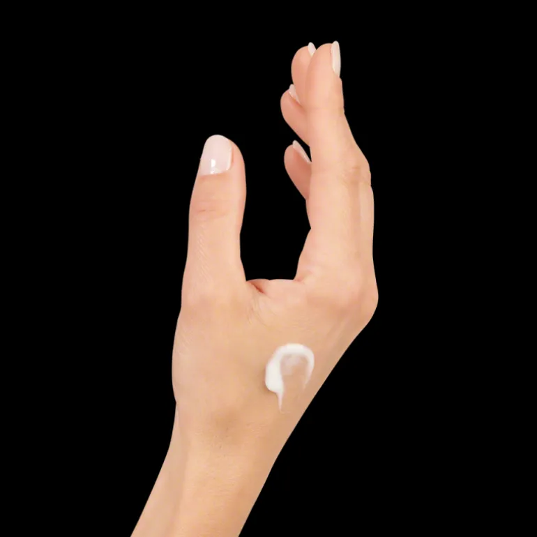 Aplicar sobre el rostro con las yemas de los dedos, efectuando movimientos circulares.