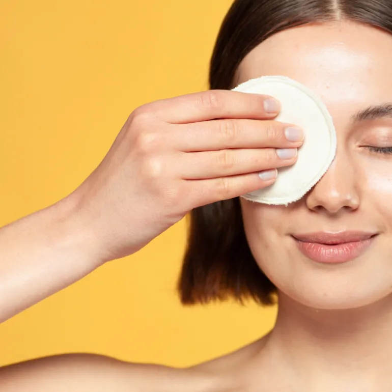 4. TIP! Si utilizas maquillaje o quieres una limpieza más profunda, por la noche aplícalo de la misma manera, pero deja reposar el algodón sobre el párpado durante unos segundos. Luego pasa a los labios y al resto del rostro.