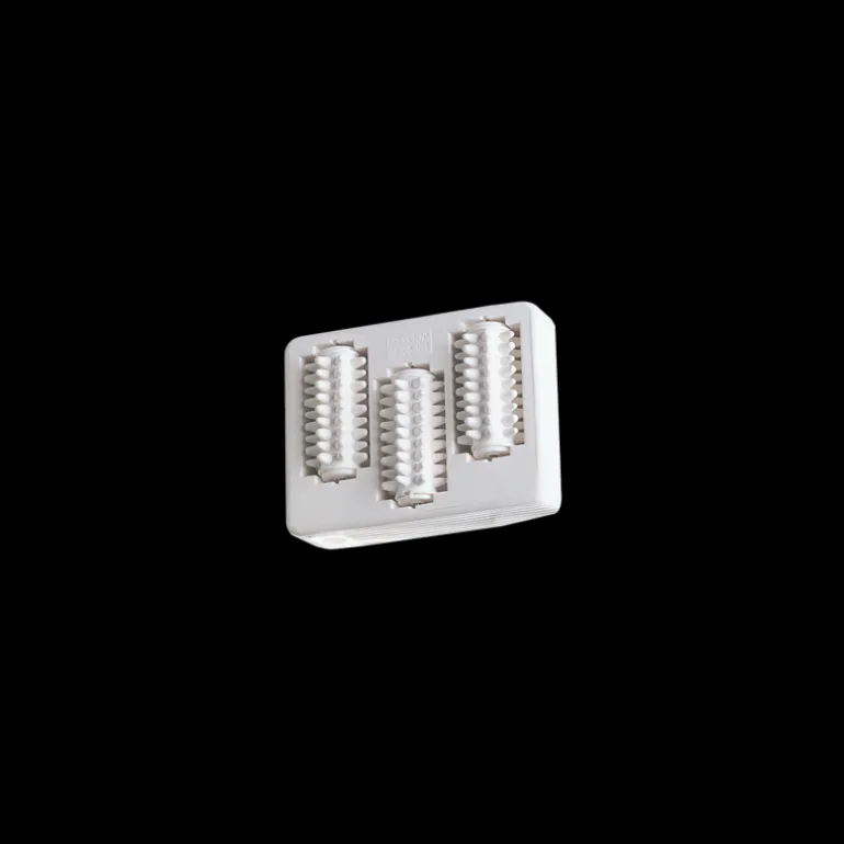 Equipado con varios cabezales giratorios con púas, proporciona un masaje eficaz y tonificante sin desplazar los tejidos.