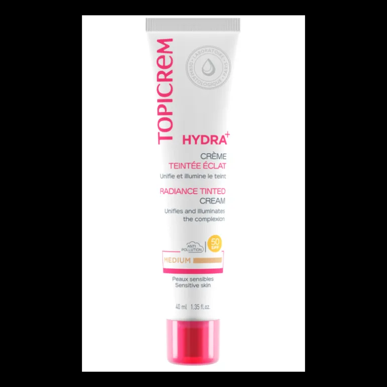 Topicrem HYDRA+ Crema Iluminadora color medio es un tratamiento 3 en 1 para pieles sensibles con cutis mate que combina cobertura, protección e hidratación.