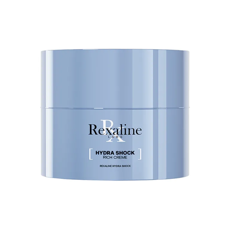 Rexaline Hydra Shock Rich Creme, bálsamo alisador superhidratante. Es el producto de cuidado de la piel perfecto para la piel seca, sedienta y cansada, formulado con el ácido hialurónico Rx2 superhidratante, 15 veces más penetrante que el ácido hialurónico estándar*, y un complejo bioactivo basado en factores fitonutrientes NMG.