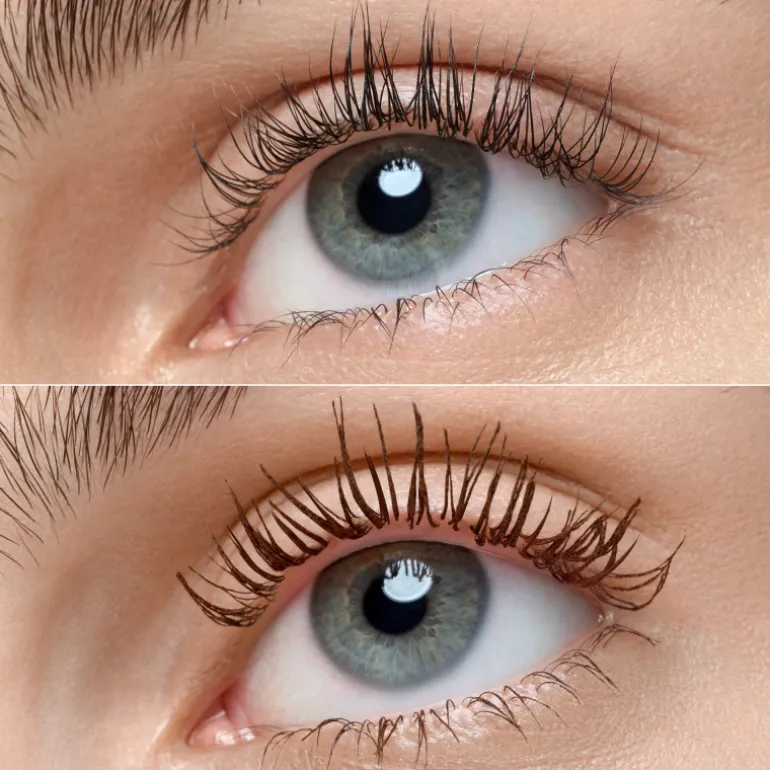 El cepillo de fibra cubre cada pestaña desde la raíz hasta la punta, creando un efecto modulable para un look natural o espectacular.