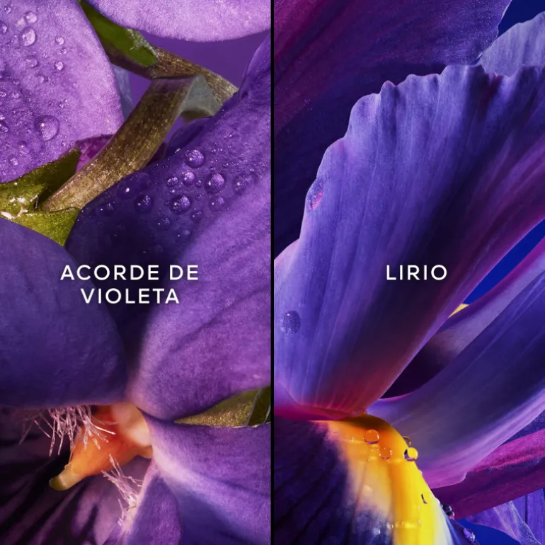 Eau de Parfum Insolence hace gala de una sobredosis de violeta, en las antípodas del murmullo tímido habitual de las medias tintas y los contraluces. Junto a esa violeta deslumbrante, el matiz femenino de un lirio de elegancia atemporal. Esta fragancia floral afrutada: un dúo empolvado inédito de violeta y lirio, modernizado con un toque de frutos rojos.