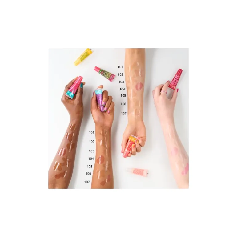 Los coloridos brillos de labios JUICY BOMB con una deliciosa fragancia consiguen unos labios preciosos y brillantes en un abrir y cerrar de ojos, ¡sin sensación pegajosa!
