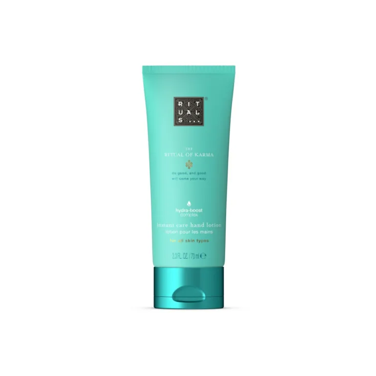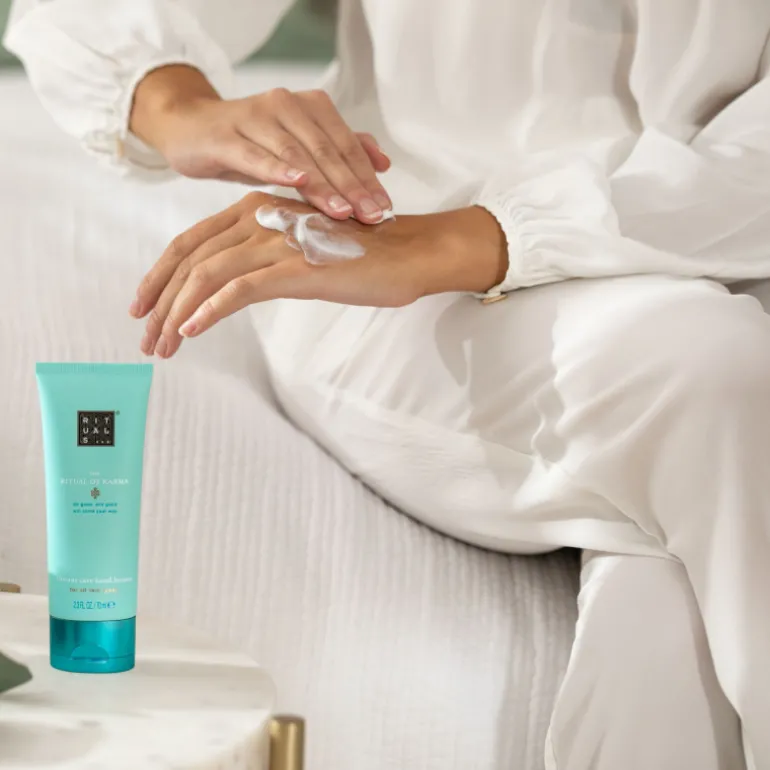 La loción The Ritual of Karma, con más del 95 % de ingredientes de origen natural, se ha desarrollado especialmente para calmar y suavizar las manos.