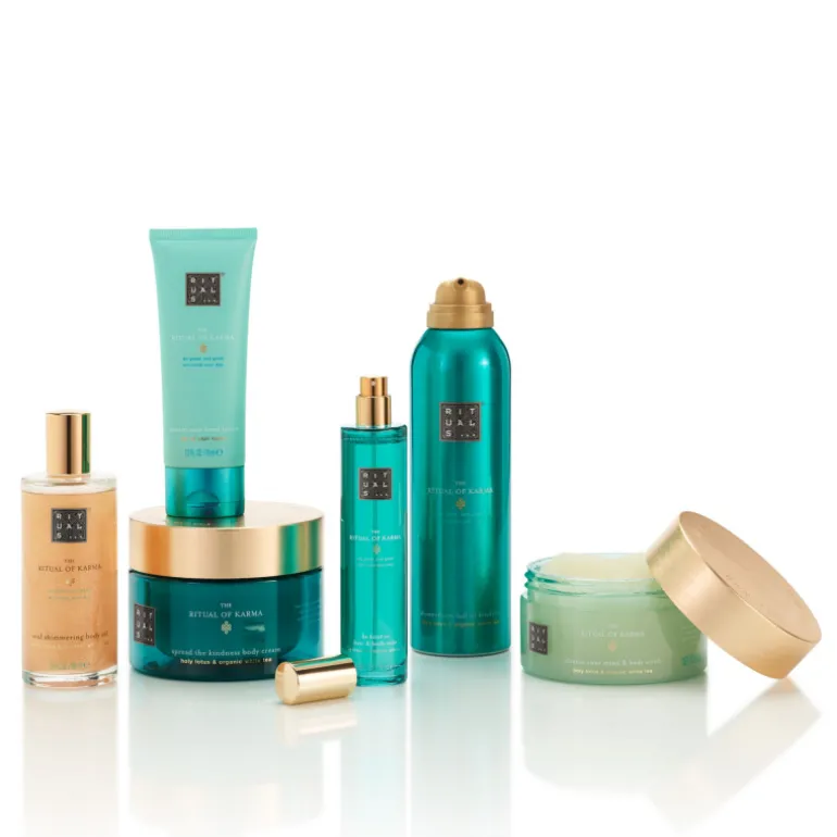 Para lograr una piel radiante, usa el aceite corporal iluminador The Ritual of Karma.
