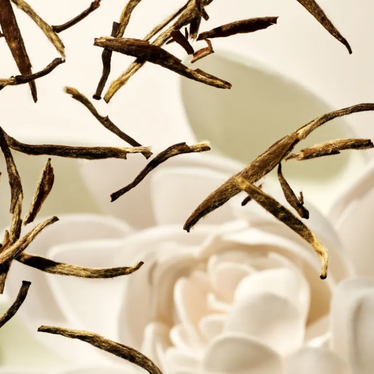 Este aceite iluminador tiene un sutil perfume de té blanco y flor de loto.