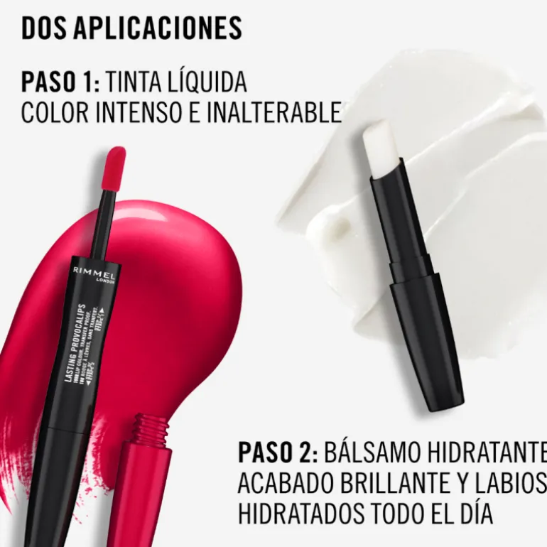 Labios a prueba de todo. Color inalterable a prueba de todo hasta 16 horas. Labios hidratados durante todo el día. Paso 1: Tinta Líquida. Paso 2: Bálsamo hidratante.